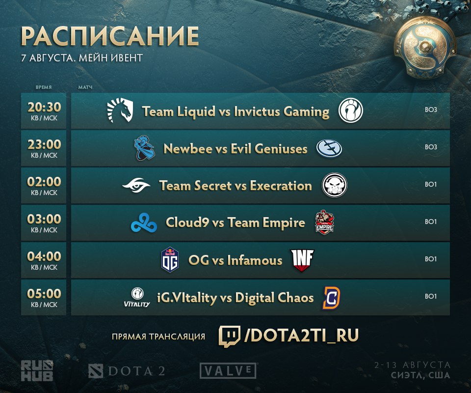 Подошли к концу матчи верхней сетки первого дня главного события TI7. Нас ждут 4 противостояния по формату bo1, первыми в битву вступают