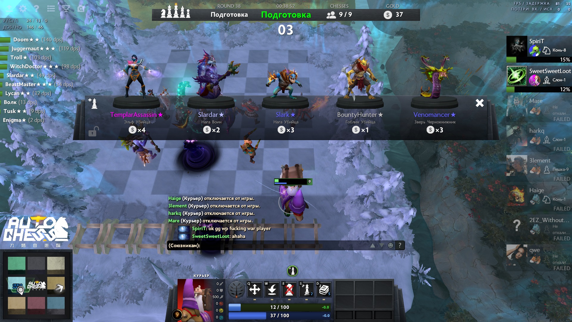Нажмите, чтобы раскрыть...Сыграл я этой тактикой, достаточно хороша, но очень от ролла зависит, 2 раза приходилось банк с 50 в 10 опускать что бы добавить героя, в итоге все равно не смог поставить алхимика, тупо не ролился. пришлось играть в 2 дк второго левела, почти выйграл, занял 2 место, проиграл эльфодруидам из-за того что в последний раз оба дк вдруг начкали суммонов атаковать 2 раза подряд. хотя там через ход волна тролей была крипоыв, я быврдяли ее и так пережил.