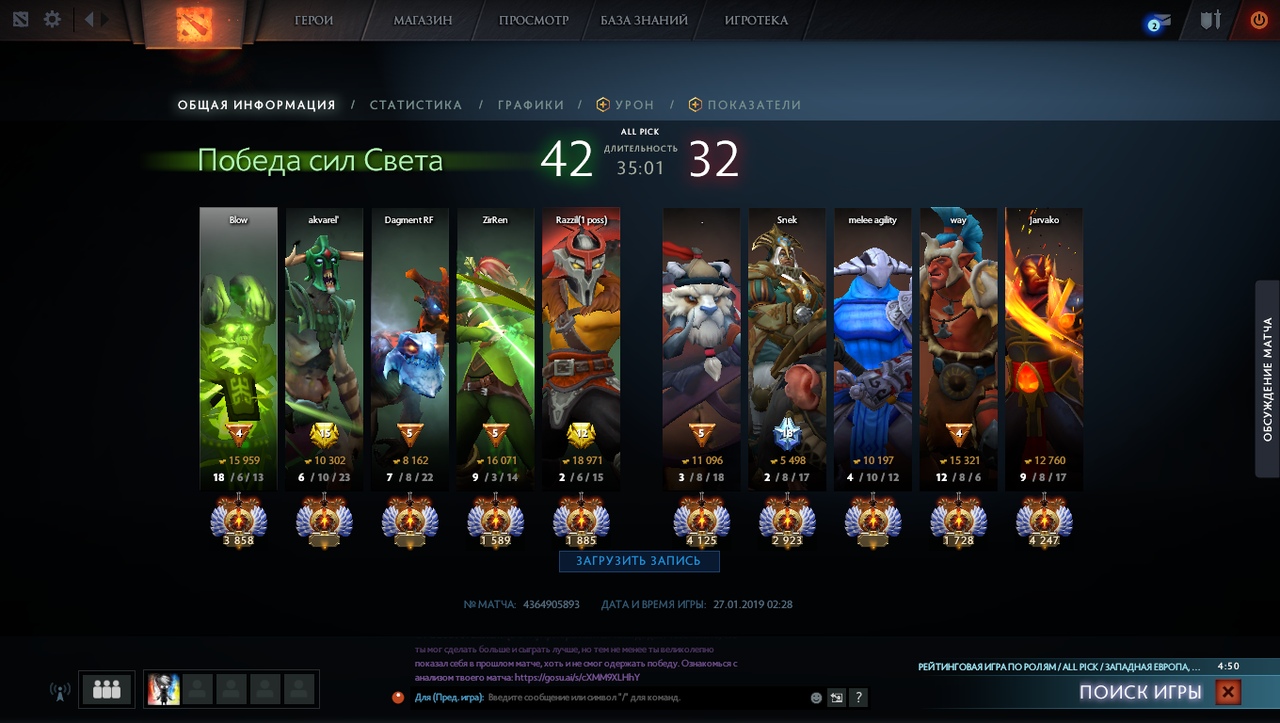 Так этот чел 1х1 умудряется отдаться шторму на 3 лвл. Титан 3000Вроде все ок, 8:2 счет.Джага(3500 ранг) афк фармит 20 минут, умирает замесе>байбекается и идет опять умирать. Раста(Титан) не выдерживает и тоже байбекается>ломает шмотки и скупает варды.А теперь скажите ребят, почему 6к ммр 2к19 такой помойный. Дали бы возможность, я бы каждого такого чела обосцал