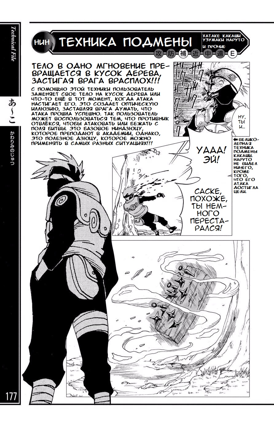 А замена на бревно (kawarimi no jutsu) дословно переводится как техника замены, хотя неизвестно каким образом. Не может же он реально поменяться местами мгновенно, как Сасуке с риннеганом