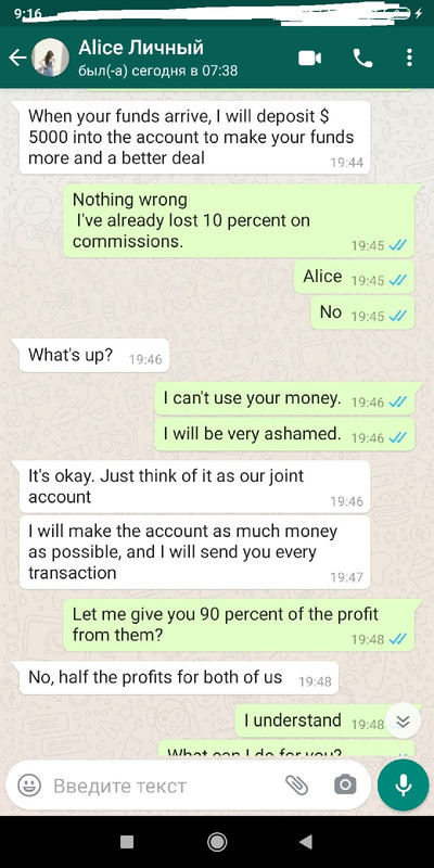 Наше знакомство перешло в ватсап.